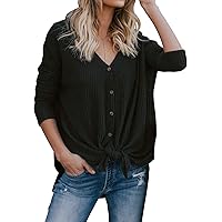 Best buy - #1:MIHOLL Womens Loose Blouse Short Sleeve V Neck Button Down T Shirts Tie Front Knot Casual Tops
