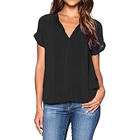 Reviews of LILBETTER Women Chiffon Blouse V Neck Short Sleeve Top Shirts