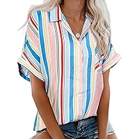 Beautife Womens Short Sleeve Shirts V Neck Collared Button Down Shirt Tops with Pockets