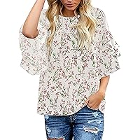 luvamia Women's Casual 3/4 Tiered Bell Sleeve Crew...