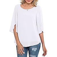 Neineiwu Womens Casual Scoop Neck Loose Top 3/4 Sleeve Chiffon Blouse Shirt Tops