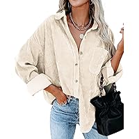 Women's Corduroy Shirts Long Sleeve Jacket Loose Casual Button Down Blouses Tops with Pockets