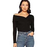 #1:Romwe Women's Casual Cross Off Shoulder Deep V Neck Ribbed Knit Slim Wrap Tee Shirt Blouse