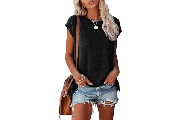 #1:MEROKEETY Women's Casual Cap Sleeve T Shirts Basic Summer Tops Loose Solid Color Blouse