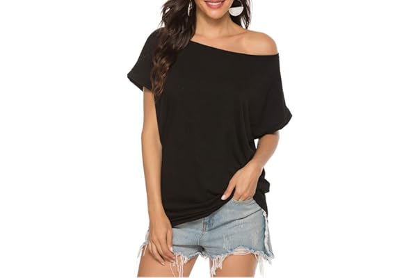 #1:Poetsky Women's Off Shoulder Tops Casual Loose Shirt Batwing Sleeve Tunics Blouse
